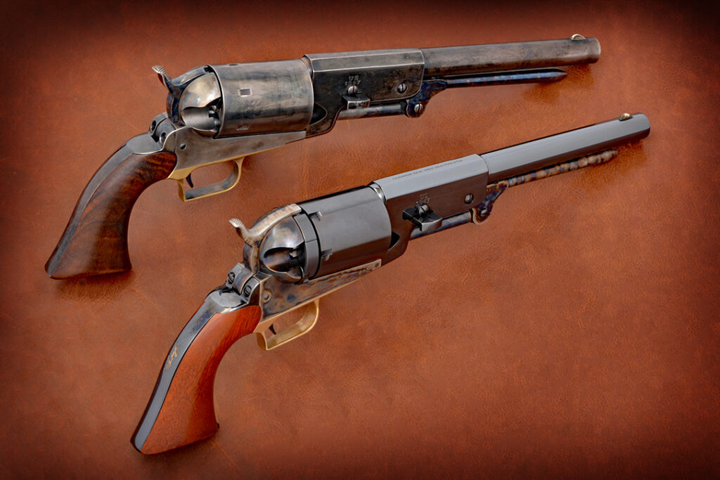 Today you can order a Walker conversion cylinder with breechring and loading gate directly from Kirst and do your own conversion installation, or send Kirst your Walker, and for an additional fee they will build it for you (as pictured). Either way, owning a Gus McCrae Walker conversion is a lot easier today than it was when gunmaker Kenny Howell built the copy of “Gus’ horse pistol” for Guns of the Old West.