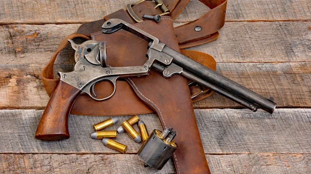 However, until the S&W Rollin White patent expired in 1869, no U.S. armsmaker could build a cartridge loading revolver, leaving Colt’s, Remington and others hamstrung throughout the conflict and the door open for foreign manufactures to export cartridge loading revolvers to both the North and South throughout the Civil War. Not surprisingly, by 1869 everyone was scrambling to find ways to convert cap and ball wheelguns into cartridge loading versions, with Colt’s and Remington leading the way.